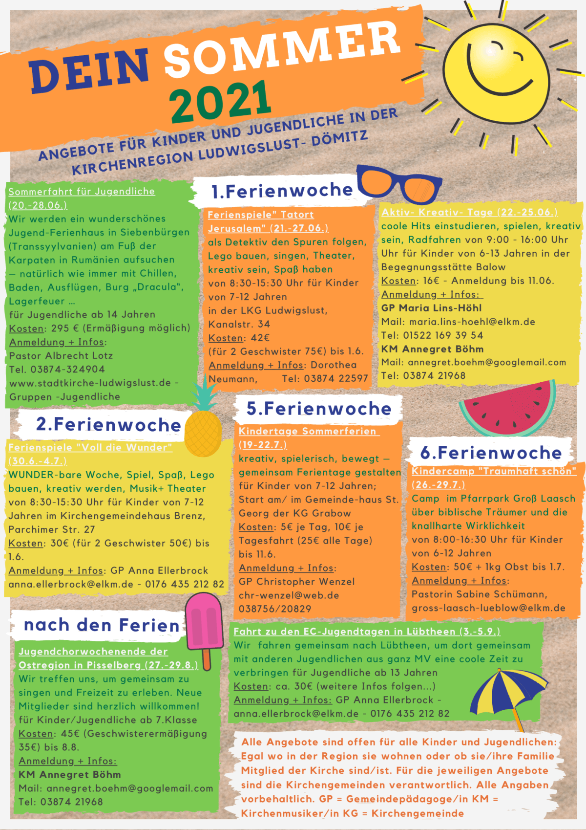 Angebote in den Sommerferien in der Kirchengemeinde Grabow und in der Kirchenregion Ludwigslust-Dömitz